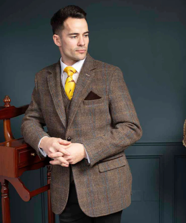 Harris Tweed Patrick jacka för herr – Mörkblått fiskbensmönster