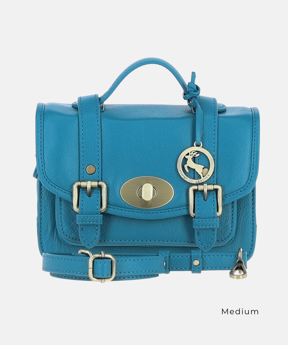 En elegant och tidlös satchelväska i äkta läder som kombinerar klassisk design med praktisk funktion. Den strukturerade silhuetten och de mässingsfärgade detaljerna ger väskan en stilren och sofistikerad karaktär, perfekt för både vardag och arbete.
